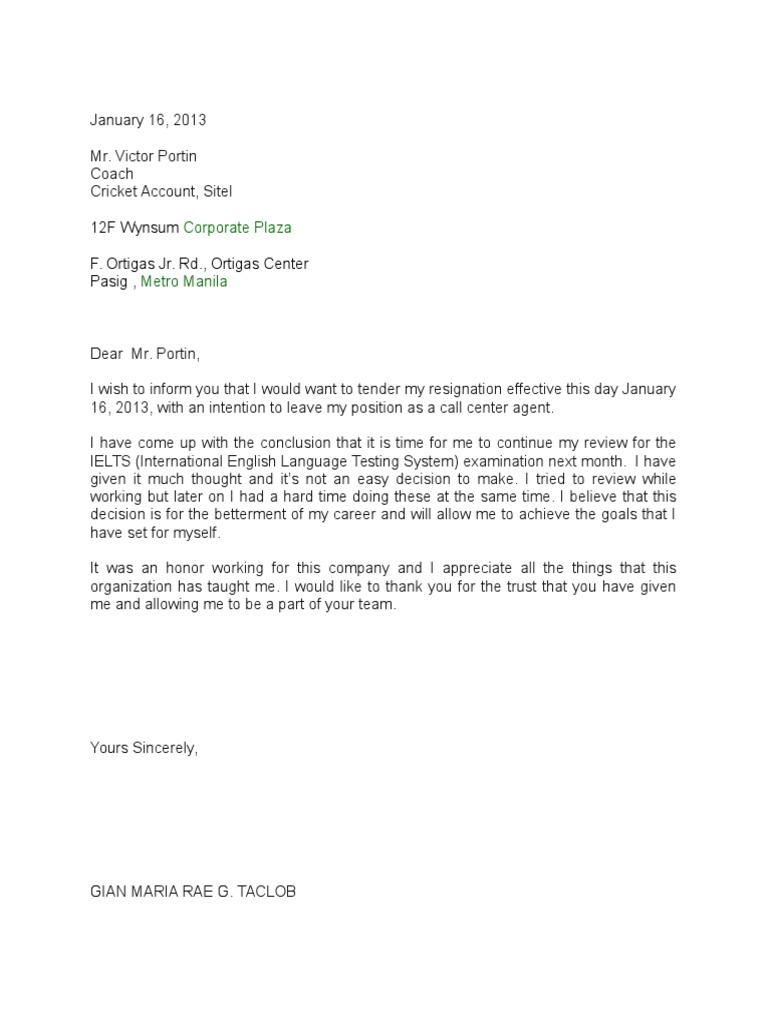Resignation letter for call center. A bpo, also known as a call center, can be a stepping stone in the career of a lot of young adults in the current climate, and while it serves. A resignation letter is an important document that officially signals your intention to leave a company. Call center agent resignation letter.